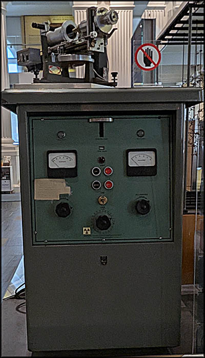 William Crookes discovered the cathode-ray in 1879 using a Maltese Cross-shaped glass. We now call these rays electrons from which comes the word “electronics.” Building on this experiment, Wilhelm Rüntegen sent an electric current through a cathode-ray tube in 1895 and found the resulting radiation penetrated objects, allowing him to take photographs of them, such as the bones of a hand. He called these x-rays. Scientists of a later age used x-rays for crystallography, the technique of crystalizing molecules, then photographing them.